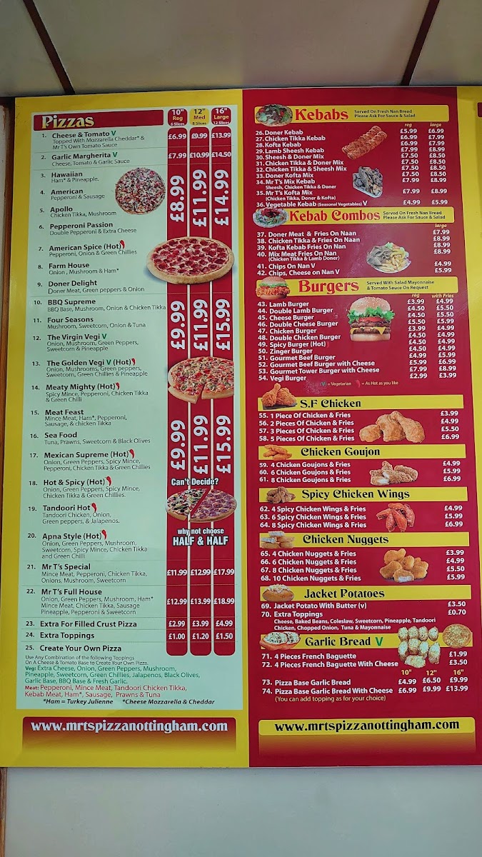 Introducing Mr Ts Pizza, located in the heart of Old Basford, Nottingham, this vibrant pizzeria is set to delight pizza lovers with its extensive menu. Offering a range of sizes for their classic Cheese and Tomato pizza, there’s a perfect option for everyone—from the 10" at £6.99 to the sharing-sized 16" for £13.99.